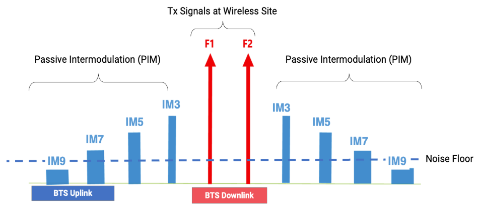 Passive Intermodulation (PIM) refers to the creation of new frequencies generated by transmit signals at a cell site when they encounter non-linearities in the RF path, such as loose connections or damaged components. These unwanted PIM signals can fall within the operator's uplink frequency band, elevating the noise floor and disrupting network performance. This interference can lead to critical issues such as dropped calls, access failures, and reduced data rates, significantly impacting the user experience and network reliability.
